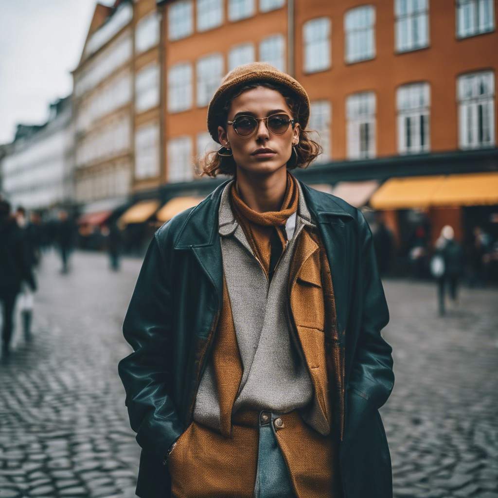 Accessories can make or break an outfit, and in this instance, they certainly make it. A mustard beanie complements the autumnal color scheme, offering a perfect pop of color and warmth. Round, metallic-framed sunglasses add a vintage flair, signifying a keen eye for timeless trends that resonate with Copenhagen’s historic charm.