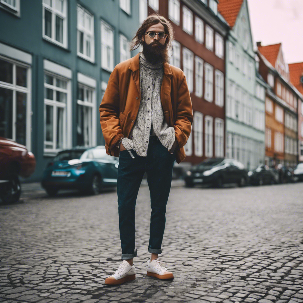 The Quintessential Urban Ensemble Encapsulating the essence of Copenhagen’s street style, our subject strikes a balance between cozy and chic. He dons a classic textured grey sweater that serves as a versatile base layer. Over it, a teal-colored wool coat with prominent pockets suggests a practical approach to fashion—a nod to the city’s preference for … Read more